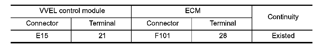 2. Check the continuity between VVEL control module harness connector and ECM harness connector.