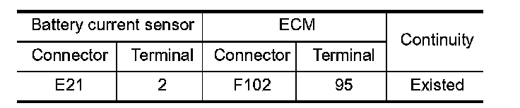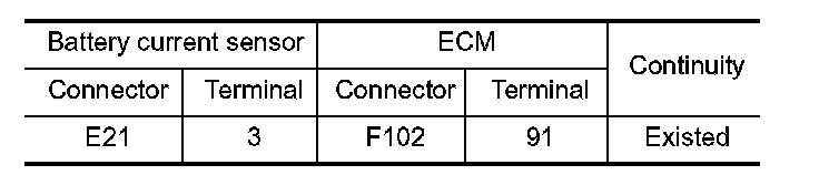 3. Check the continuity between battery current sensor harness connector and ECM harness connector.