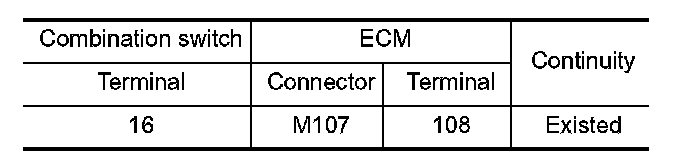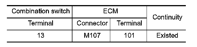 1. Check the continuity between combination switch and ECM harness connector.