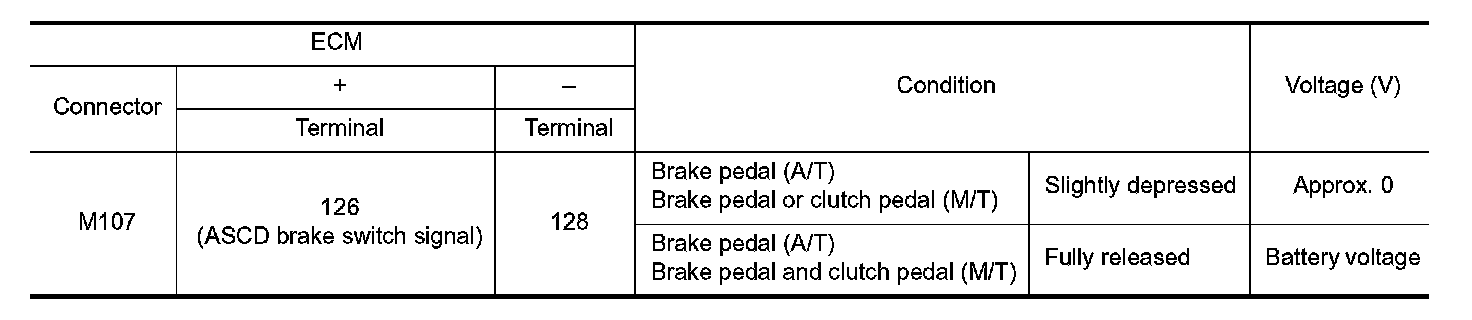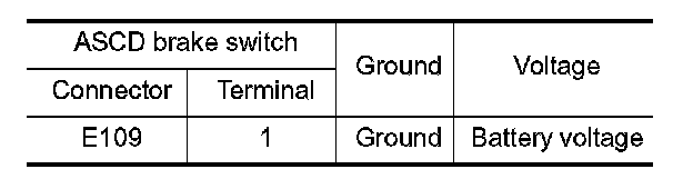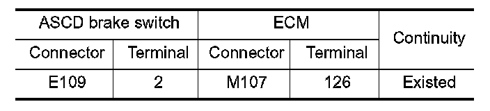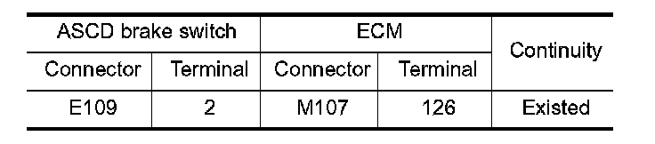 2. Check the continuity between ASCD brake switch terminals under the following conditions.