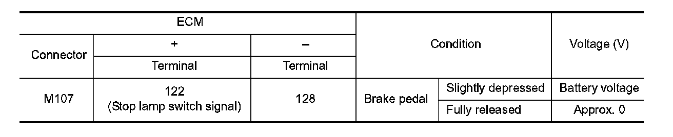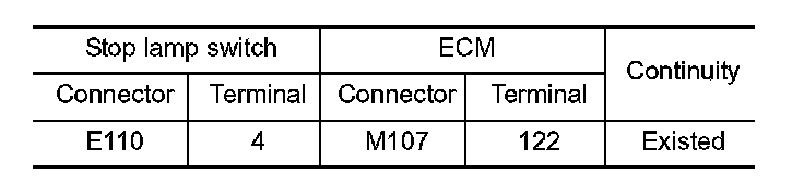 3. Check the continuity between stop lamp switch terminals under the following conditions.