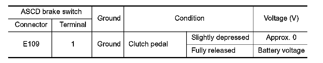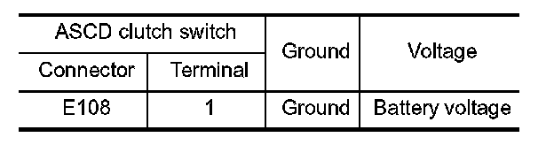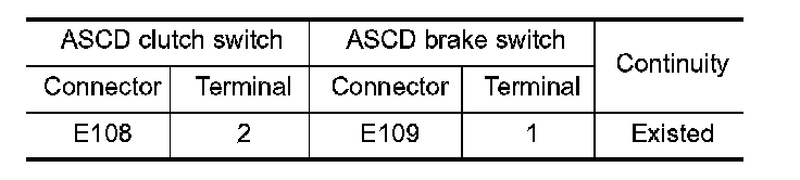 3. Check the continuity between ASCD clutch switch terminals under the following conditions.