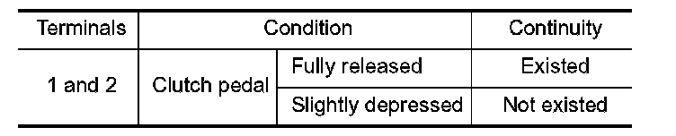 2. Check the continuity between ASCD clutch switch terminals under the following conditions.