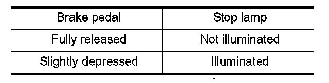 2. Check the stop lamp when depressing and releasing the brake pedal.