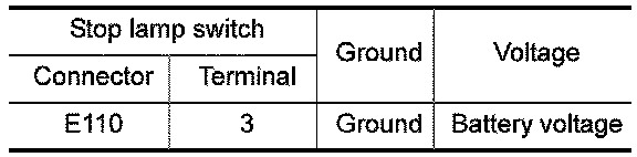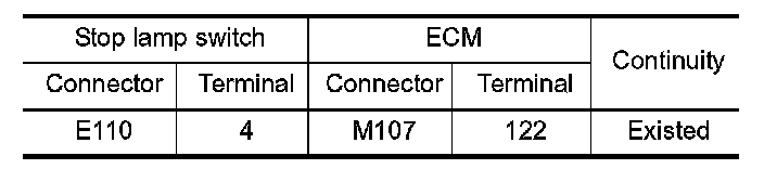 3. Check the continuity between stop lamp switch terminals under the following conditions.