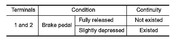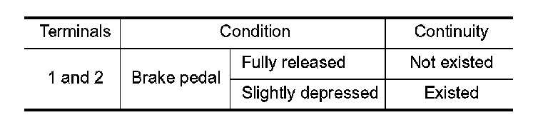 2. Check the continuity between stop lamp switch terminals under the following conditions.