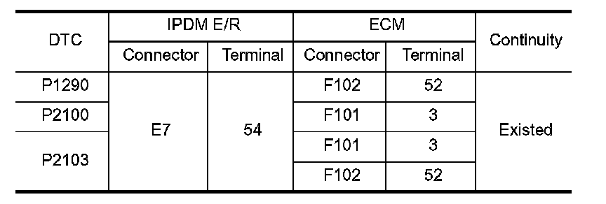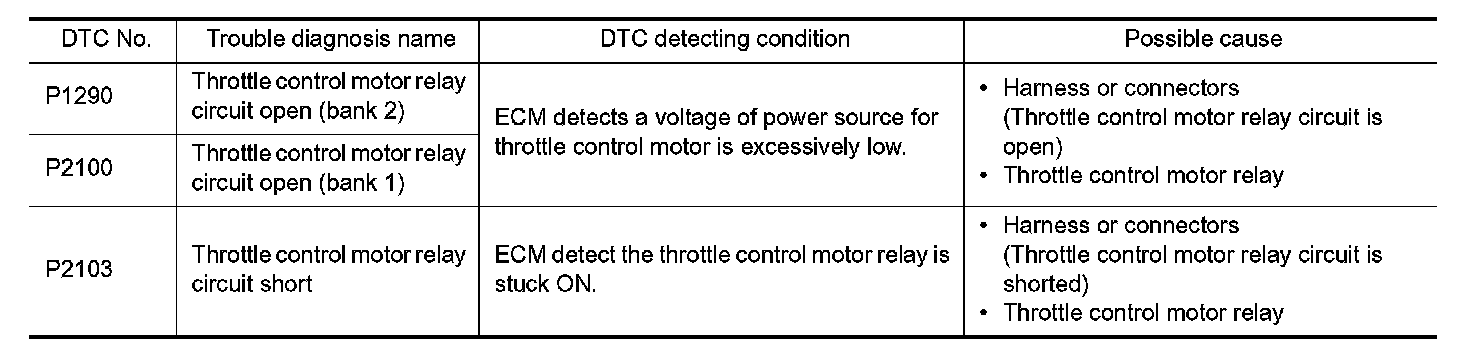 P1290, P2100, P2103 THROTTLE CONTROL MOTOR RELAY