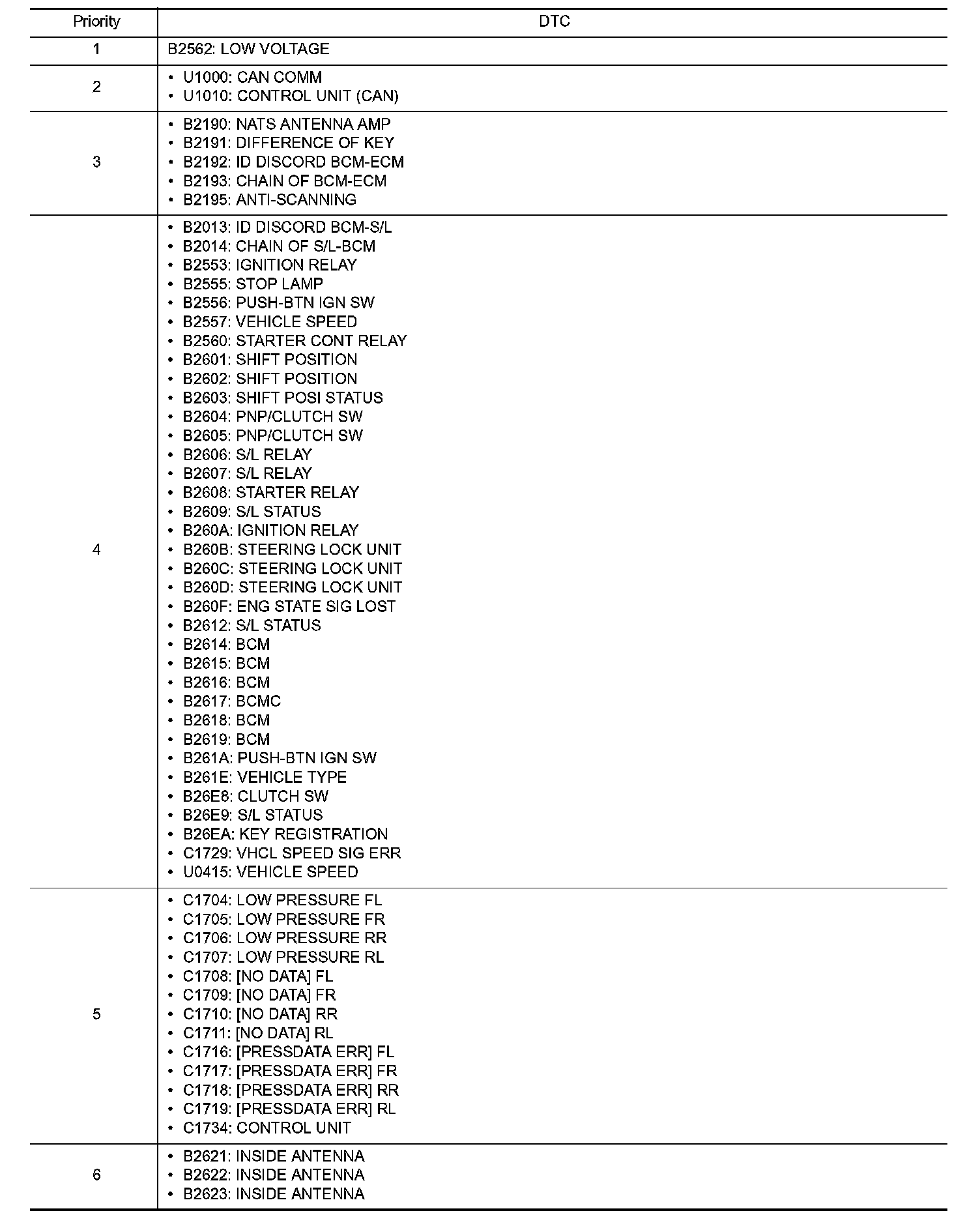 DTC Inspection Priority Chart 1-6: