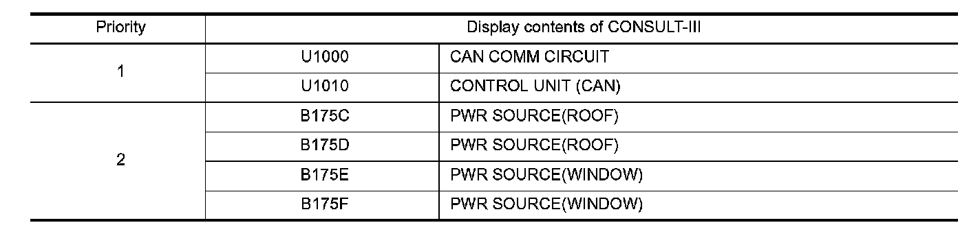 If some DTCs are displayed at the same time, perform inspections one by one based on the following priority chart.