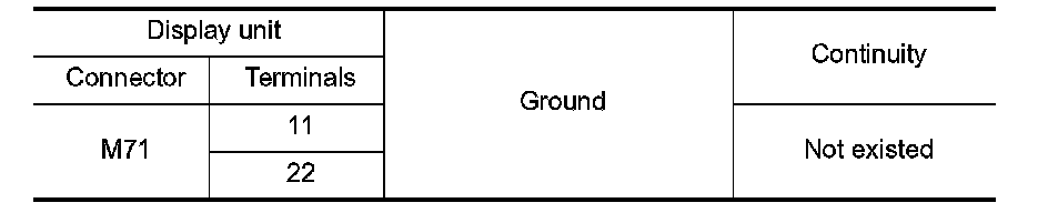 Check signal between display unit harness connector and ground.