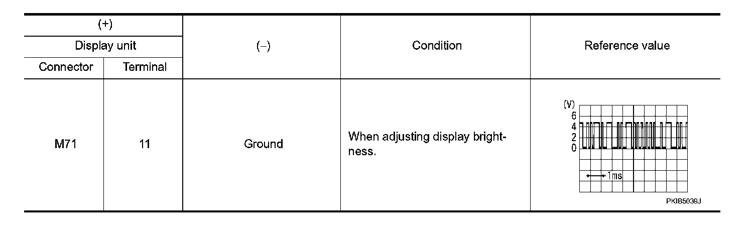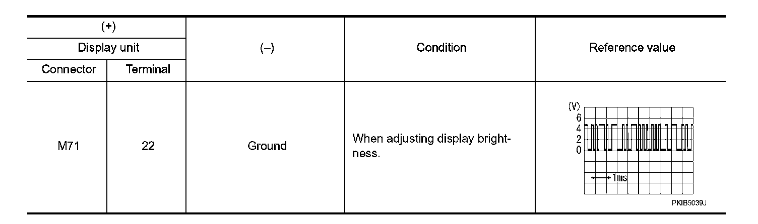 3. Check signal between display unit harness connector and ground.