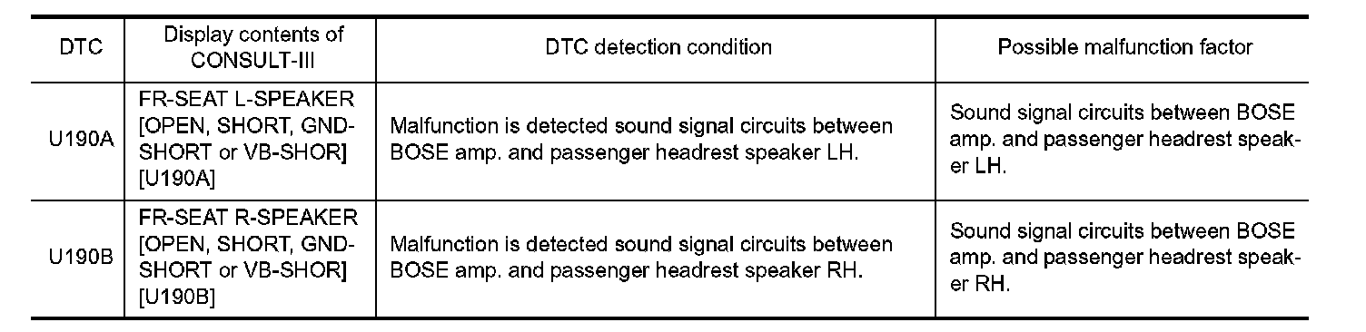 YES�1 - U190A: Check harnesses between BOSE amp. and passenger headrest speaker LH.