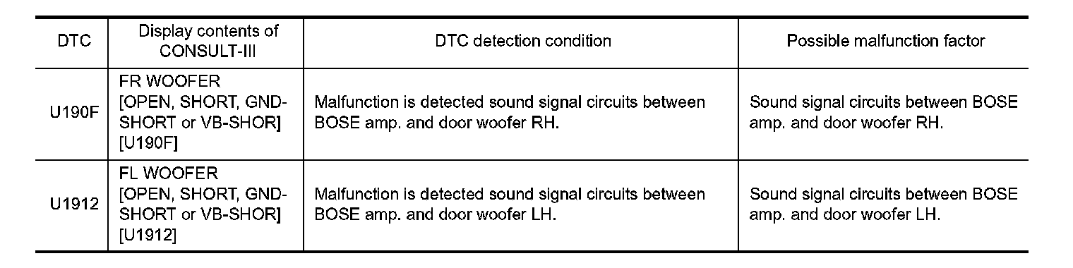 YES�1 - U1901F Check harnesses between BOSE amp. and door woofer RH.