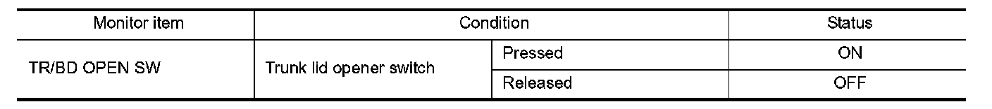 Check ("TR/BD OPEN SW") in BCM "Data Monitor" mode using CONSULT-III.