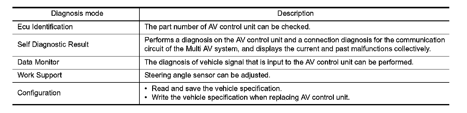 DIAGNOSIS SYSTEM (AV CONTROL UNIT)