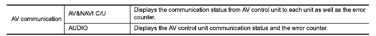 When "AV communication" of "CAN DIAG Support Monitor" is selected, the following function will be performed.