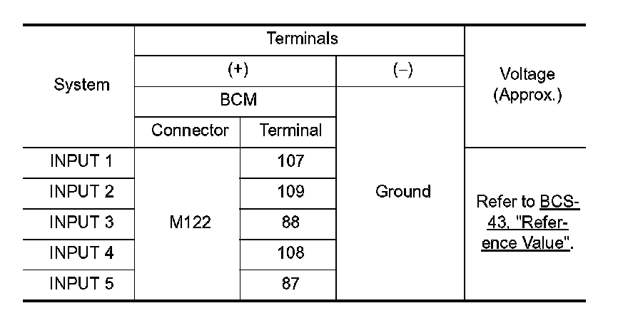 2.CHECK INPUT 1 - 5 SYSTEM CIRCUIT FOR SHORT