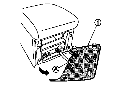- Remove metal clips from rear of console finisher (1), and then remove pawl of front.