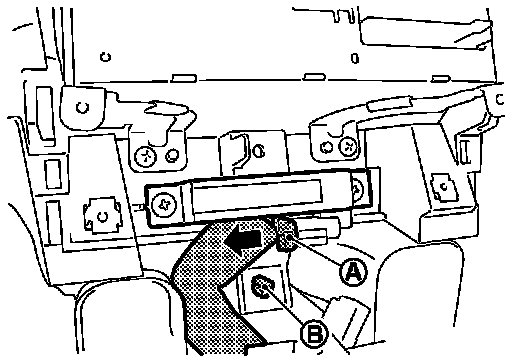 4. Remove screws (B) of center console assembly front side with screw driver (A).