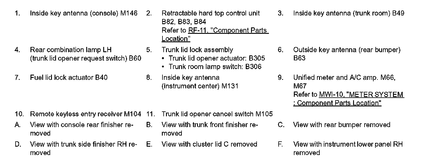 REMOTE KEYLESS ENTRY FUNCTION : Component Parts Location