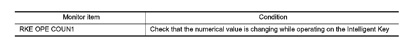 Check ("RKE OPE COUN1") in BCM "Data Monitor" mode using CONSULT-III.