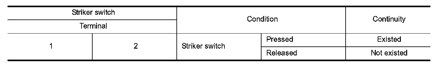 3. Check continuity between striker switch terminals.