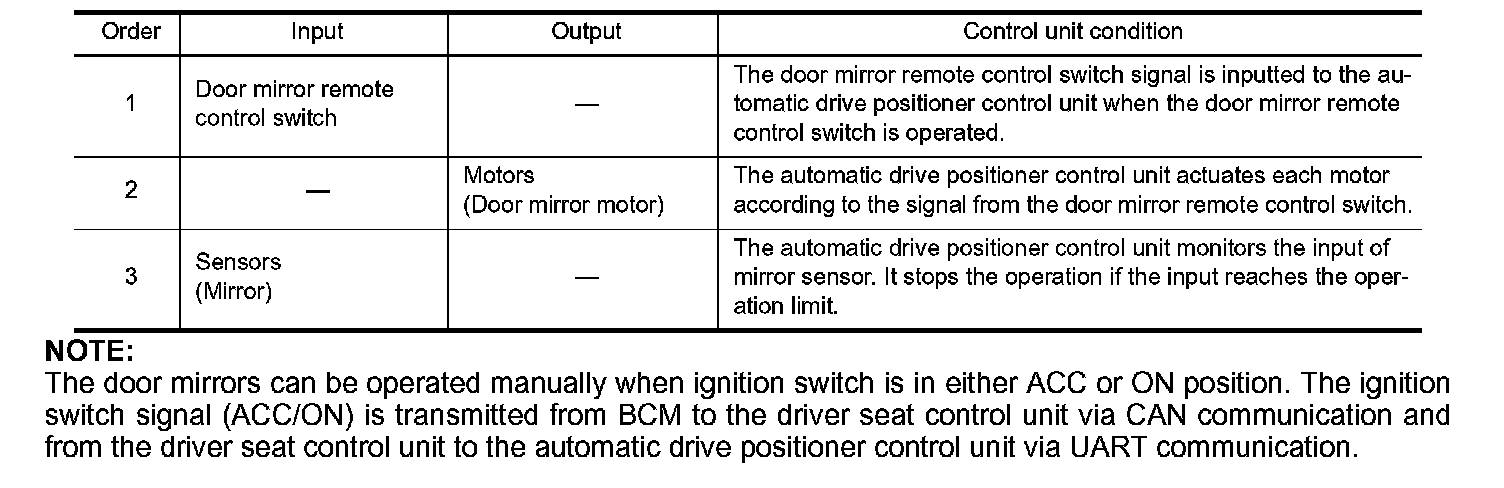 1. Operate power seat switch, tilt & telescopic switch or door mirror remote control switch.