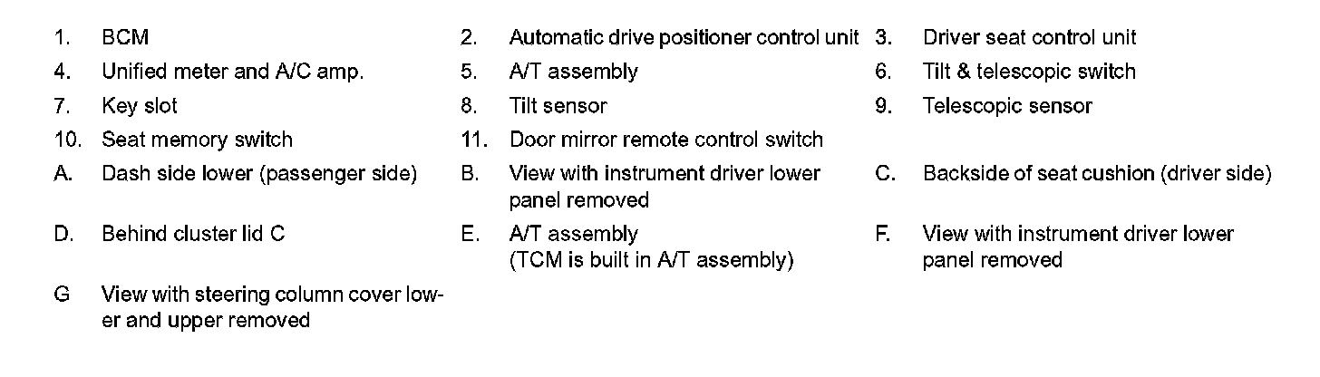 SEAT SYNCHRONIZATION FUNCTION : Component Parts Location