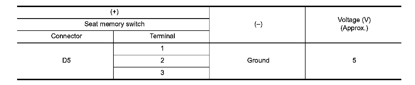 4. Check voltage between seat memory switch harness connector and ground.