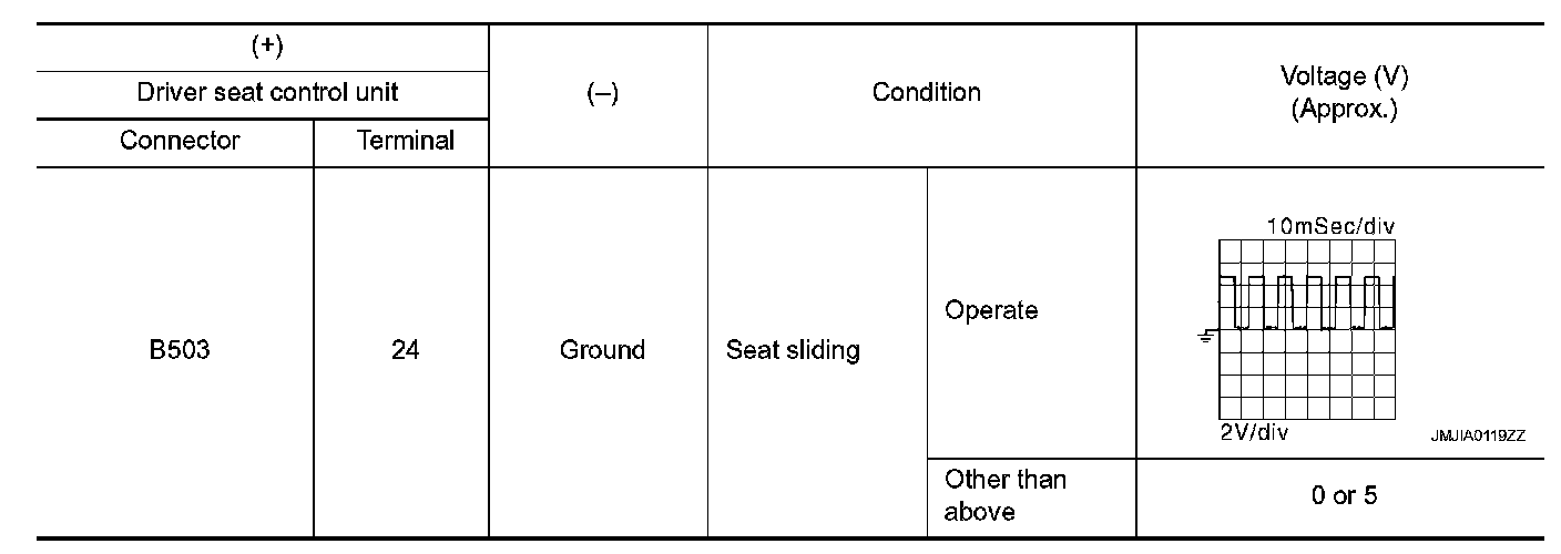 2. Check voltage signal between driver seat control unit harness connector and ground using oscilloscope.