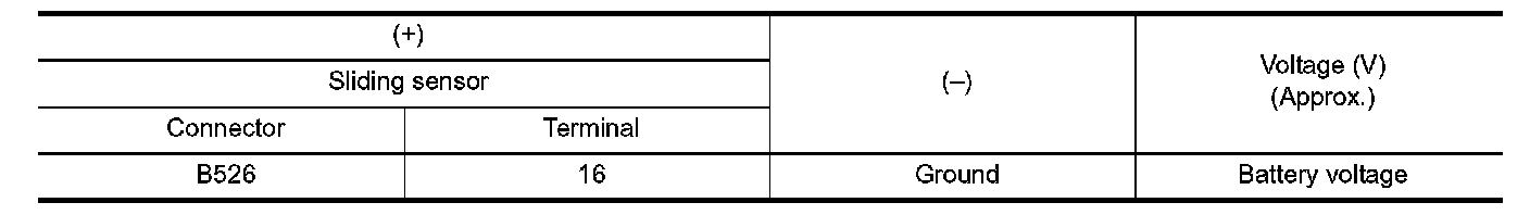 3. Check voltage between sliding sensor harness connector and ground.