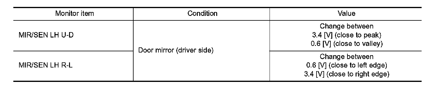 3. Check mirror sensor (driver side) signal under the following condition.