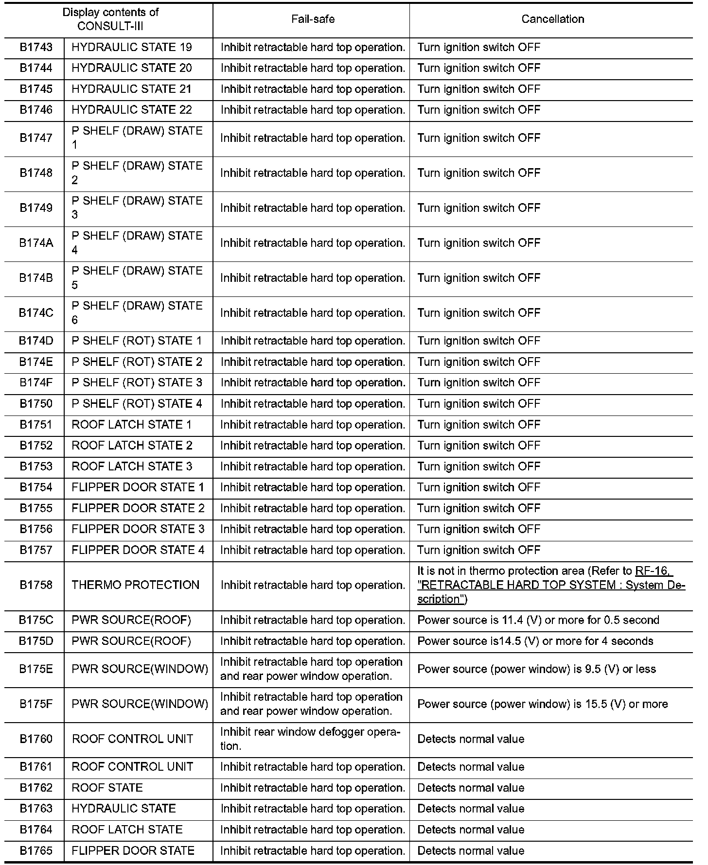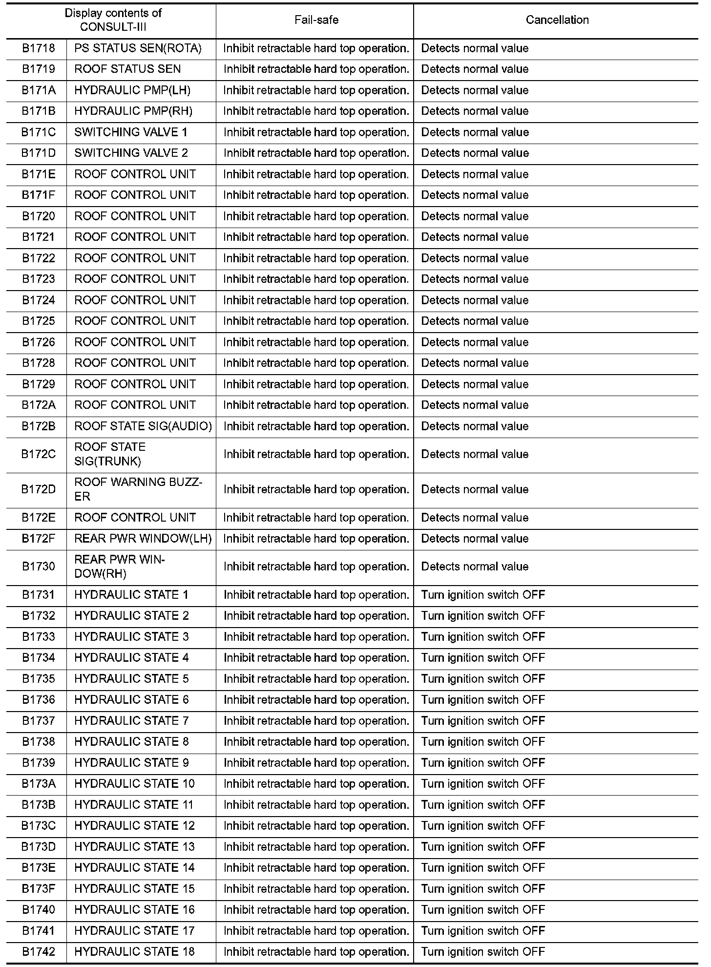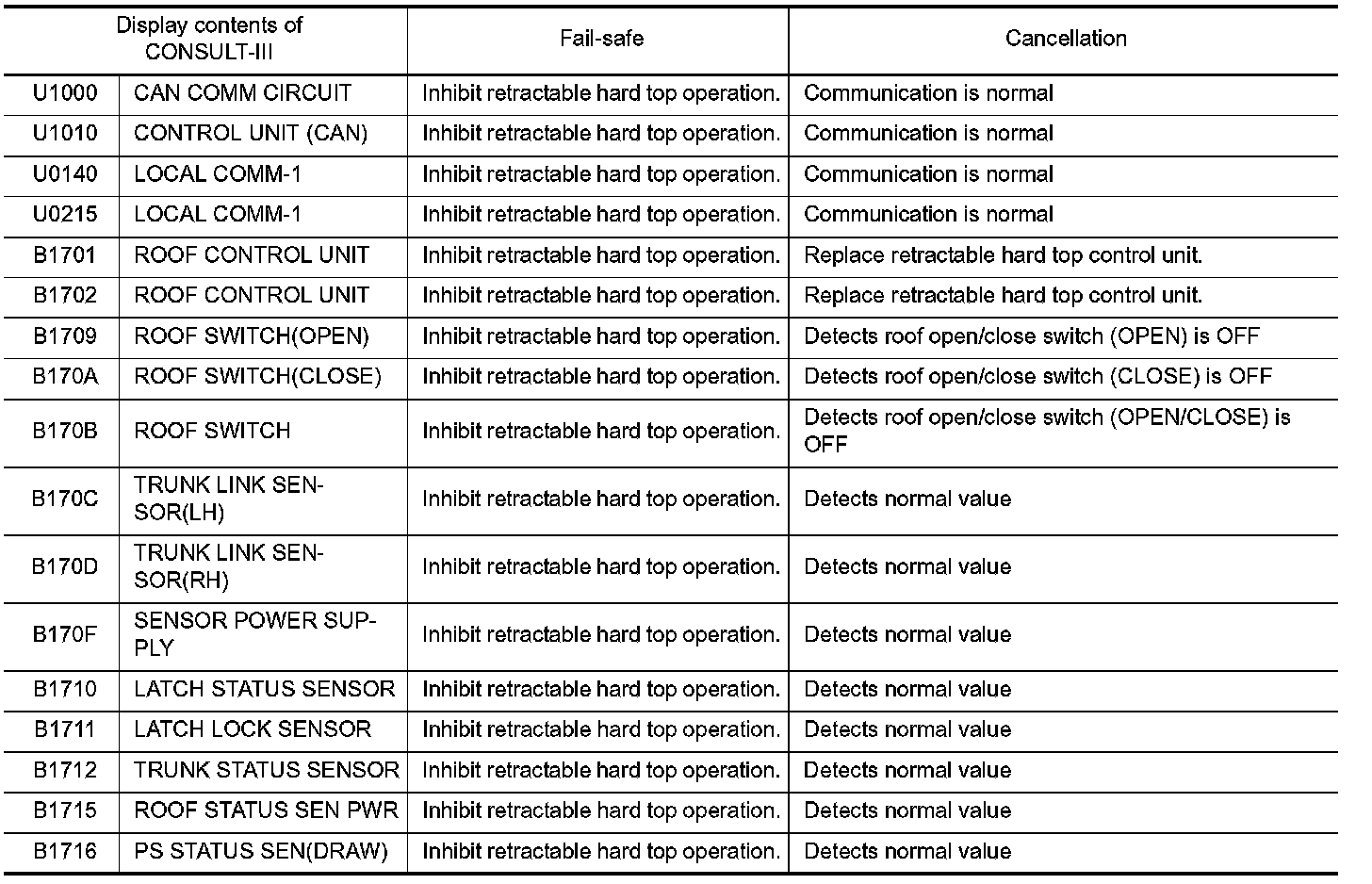 Retractable hard top control unit performs fail-safe control when any DTC are detected.