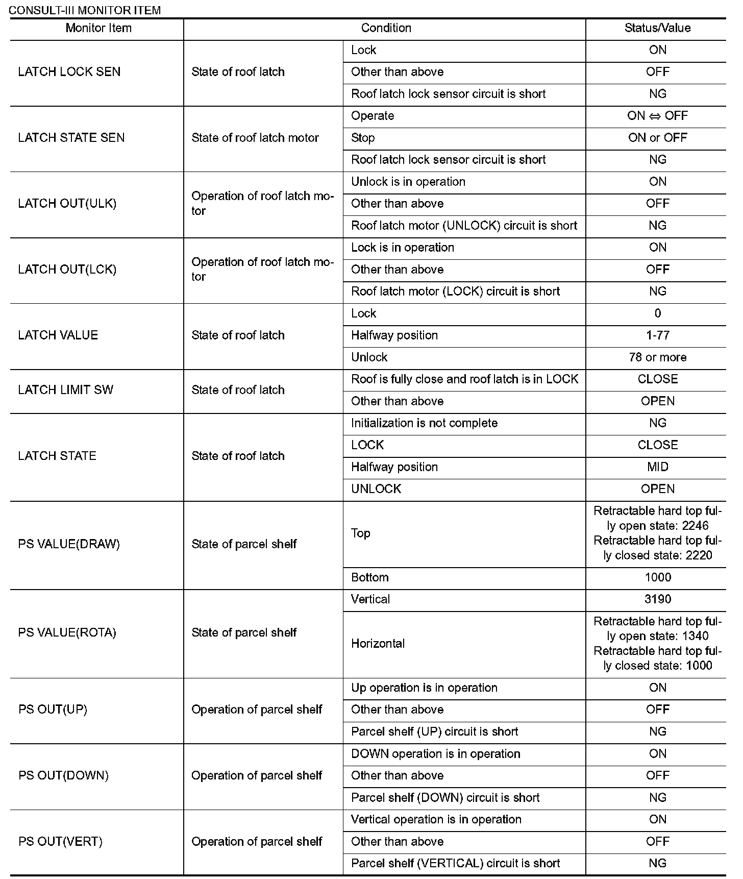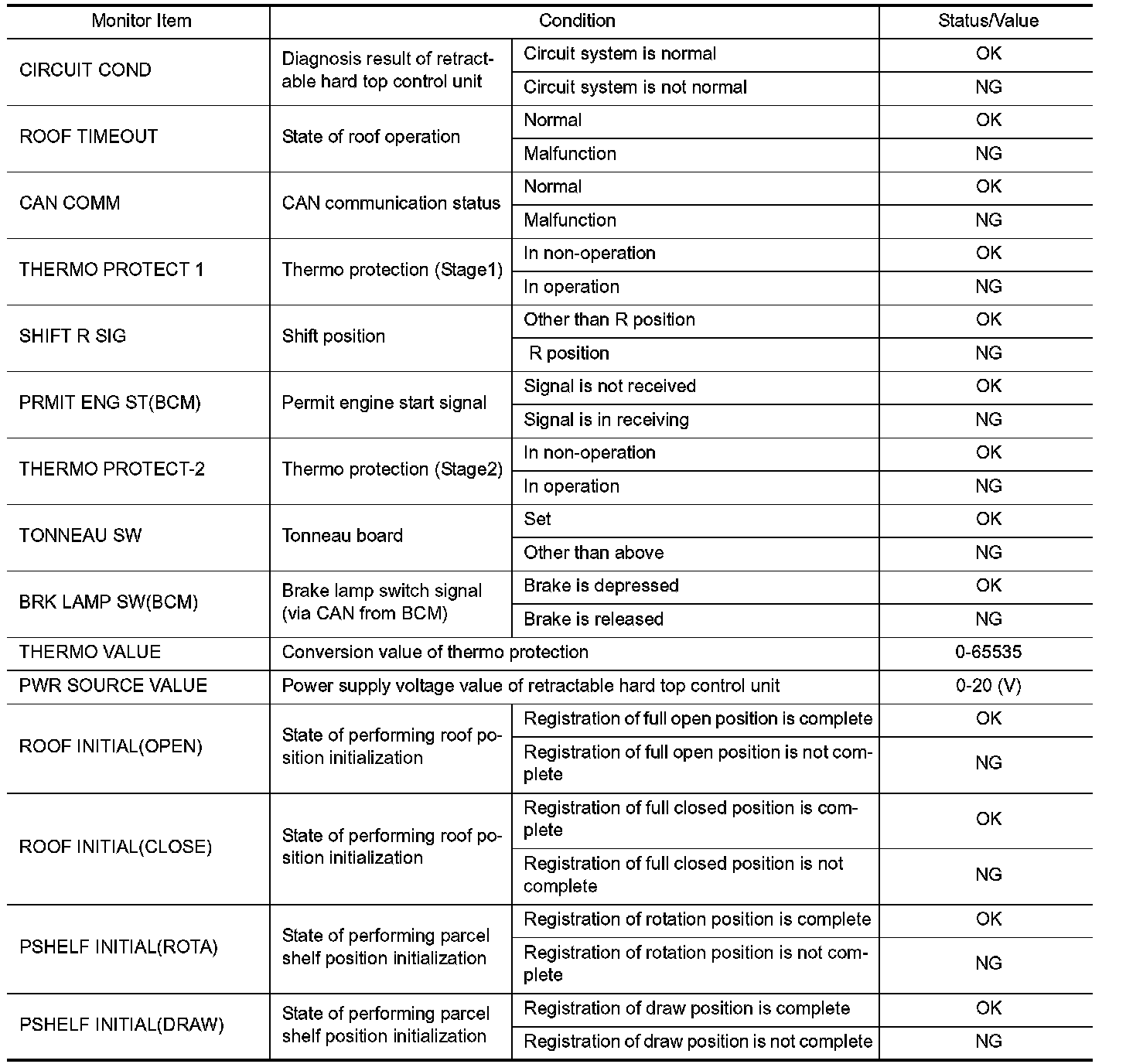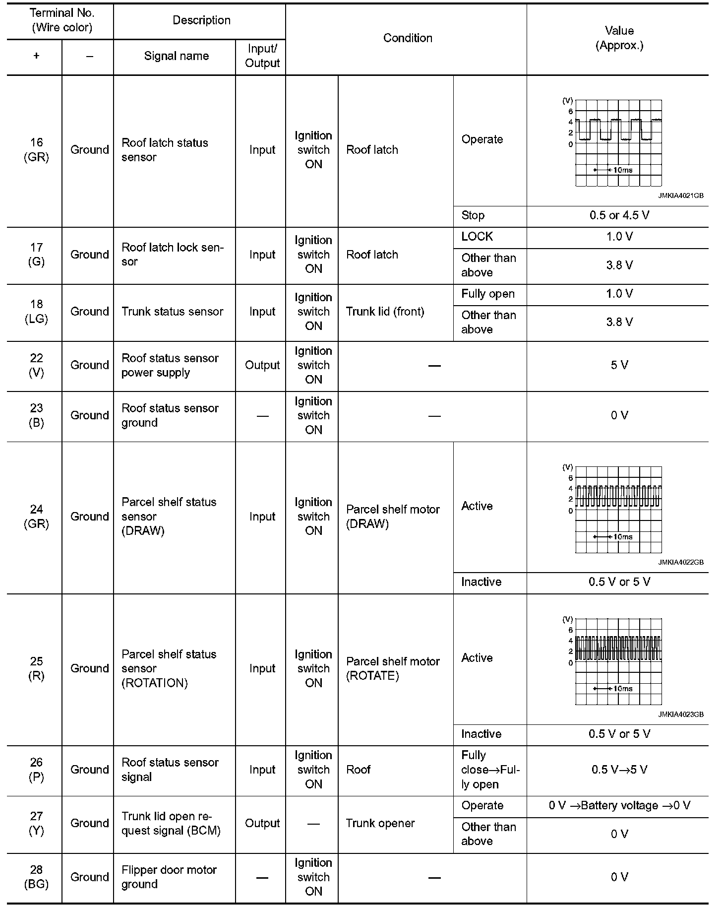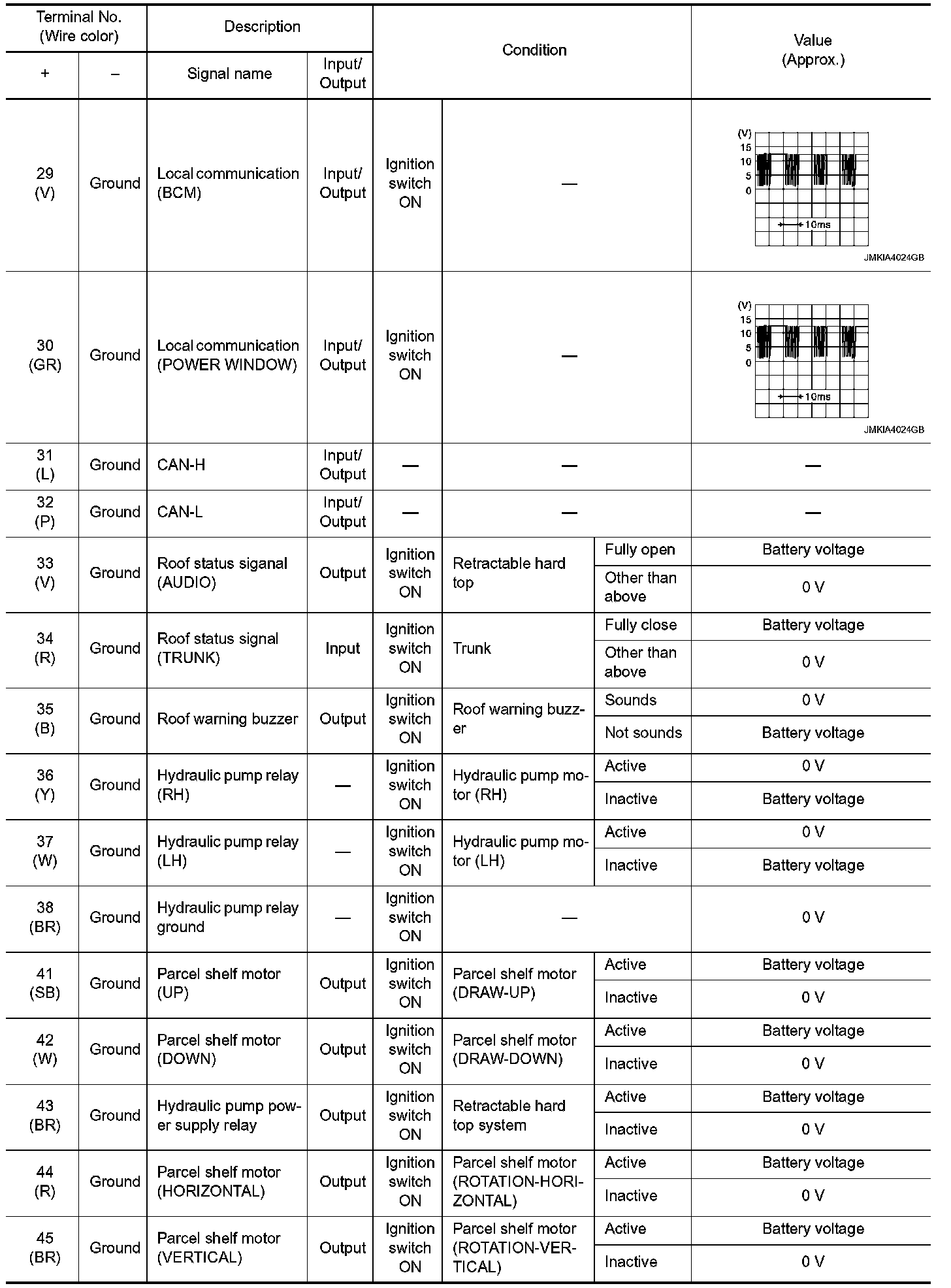 Pinout Values and Diagnostic Parameters