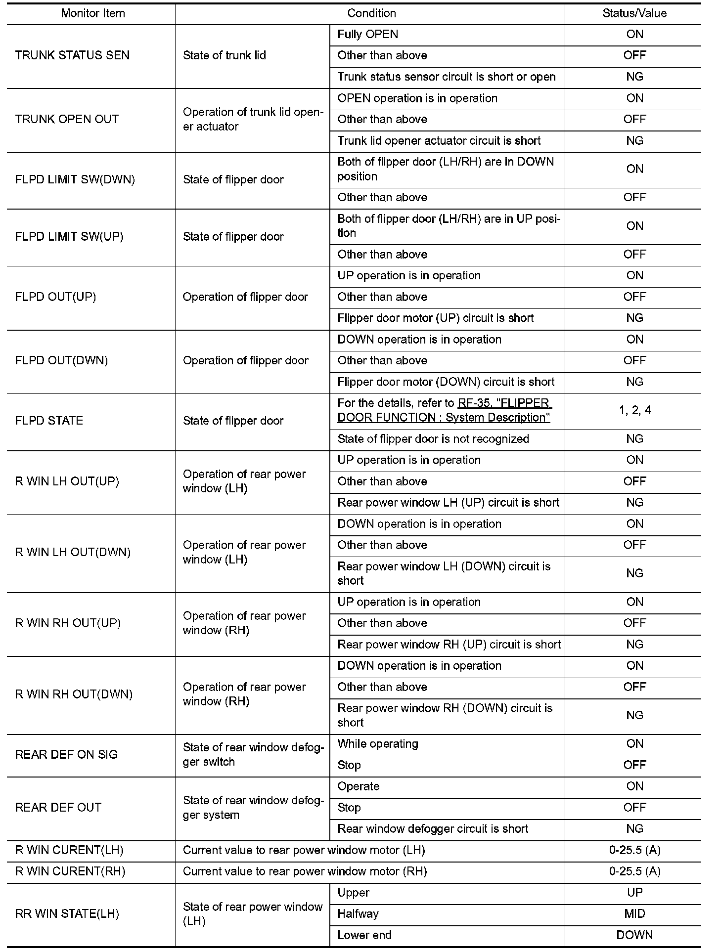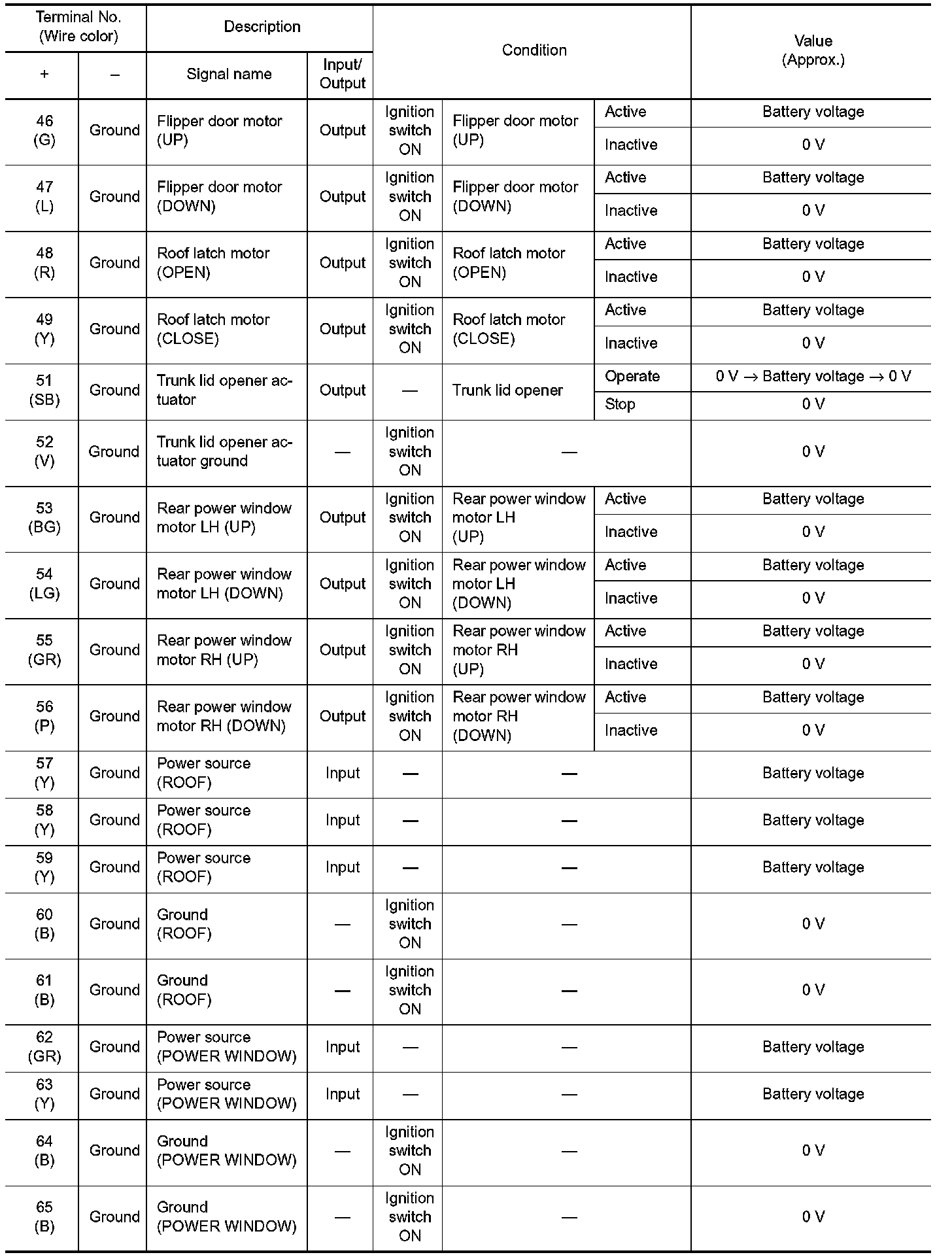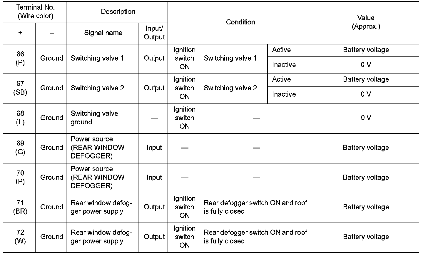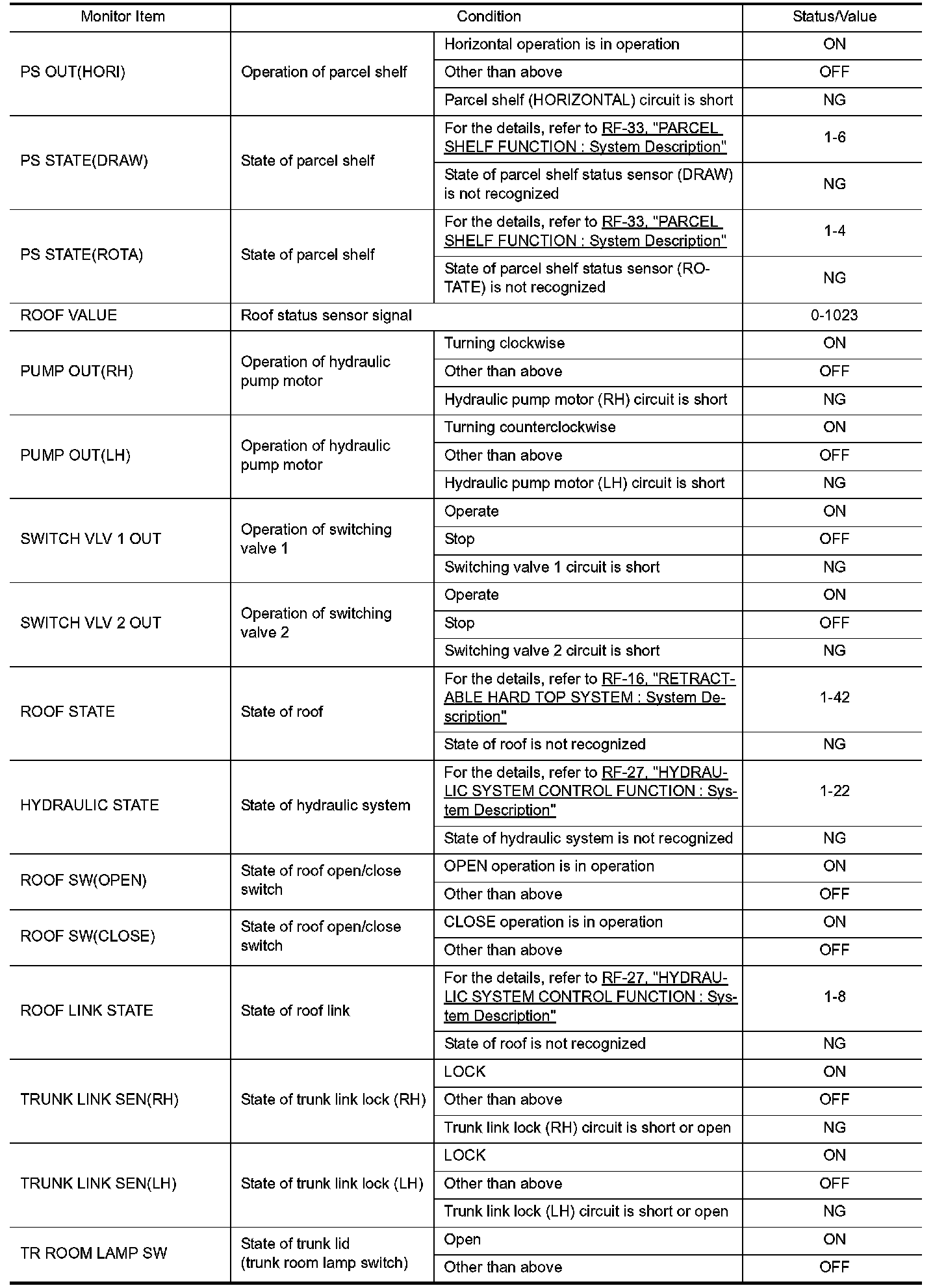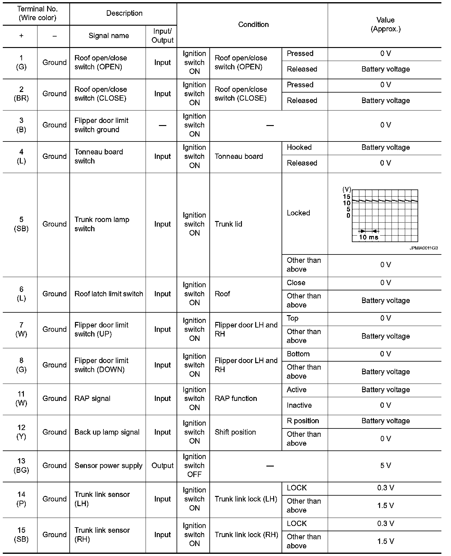 Pinout Values and Diagnostic Parameters