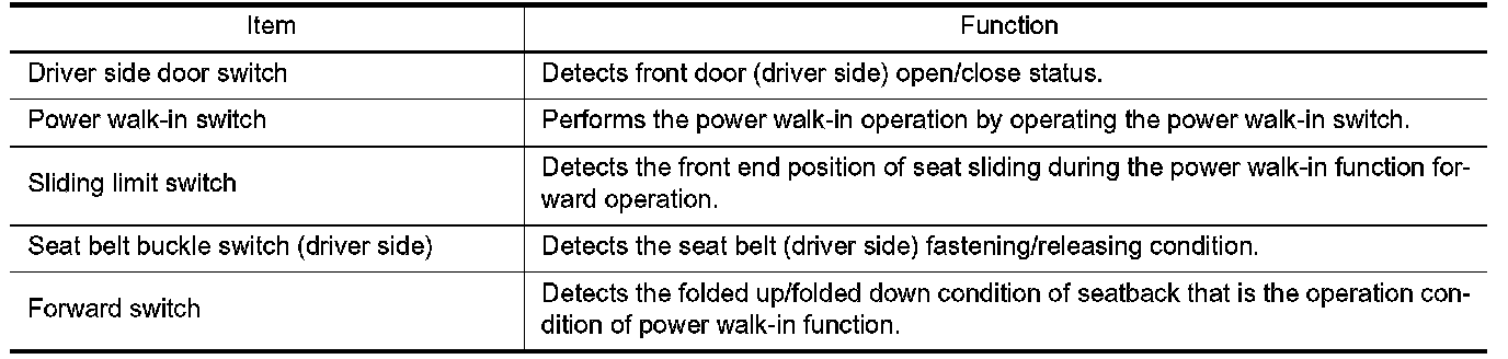 POWER WALK-IN FUNCTION : Component Description