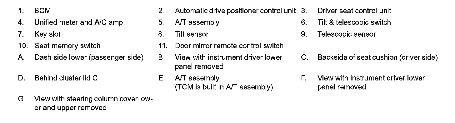 MEMORY FUNCTION : Component Parts Location