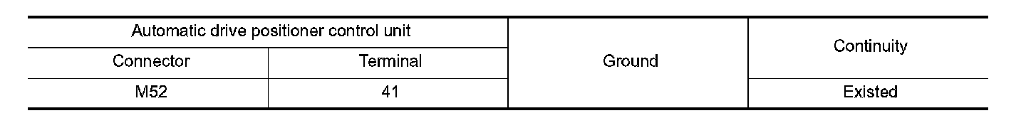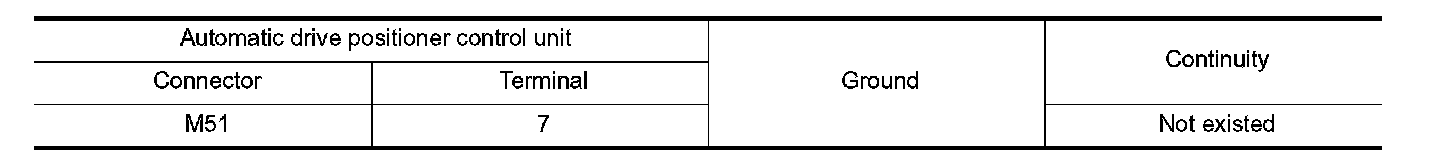 2. Check continuity between automatic drive positioner control unit harness connector and ground.
