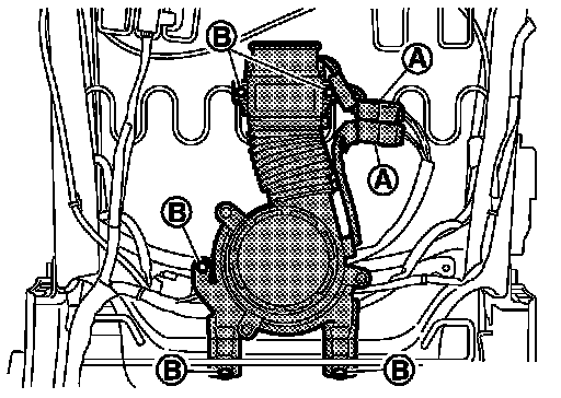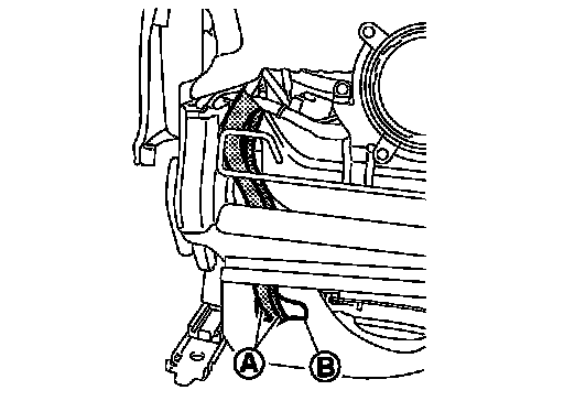 8. Remove seat cushion trim retainers and pull out harness (A) through the hole of seat cushion trim (B).