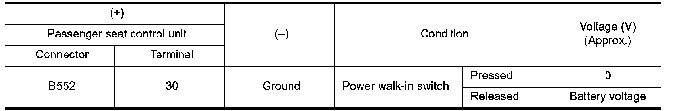 - The operation signal is input to passenger seat control unit when power walk-in switch is operated.