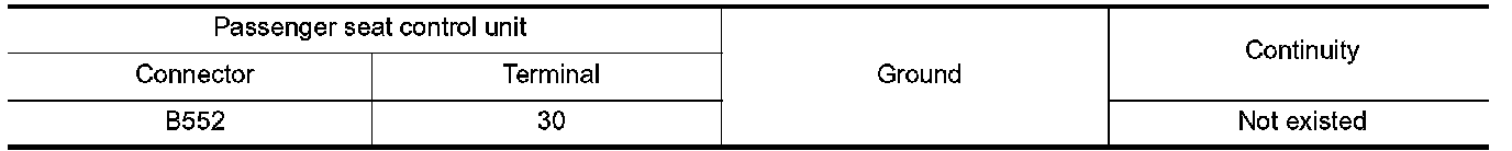 3. Check continuity between passenger seat control unit harness connector and ground.