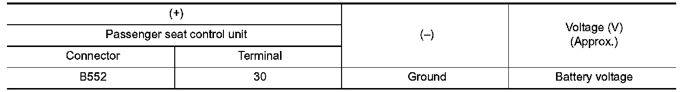 2. Check voltage between passenger seat control unit harness connector and ground.