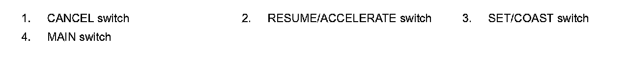 If the system is canceled by conditions 1-7 below, the system will resume control at the last set cruising speed by pushing the RESUME/ACCELERATE switch.