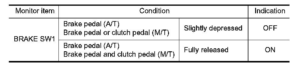2. Select "BRAKE SW1" in "DATA MONITOR" mode with CONSULT-III.