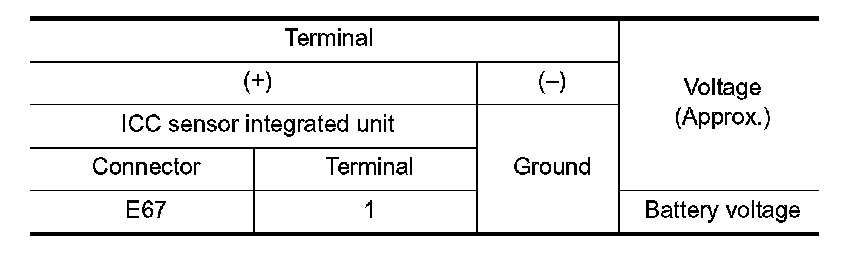 4. Check voltage between ICC sensor integrated unit harness connector and ground.