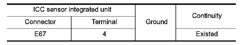 2. Check for continuity between ICC sensor integrated unit harness connector and ground.