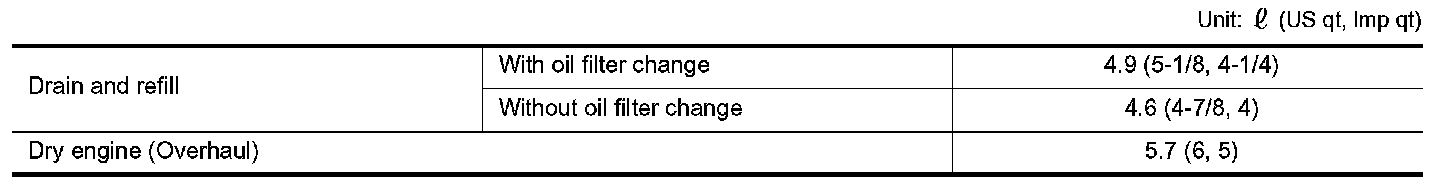 ENGINE OIL CAPACITY (APPROXIMATE)