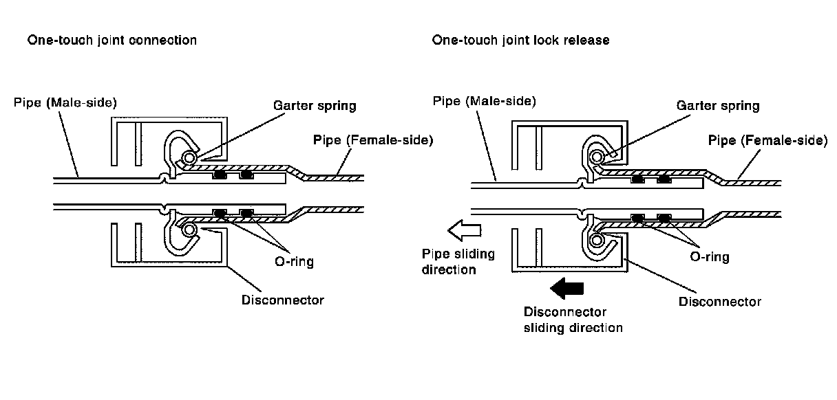 3. Slide disconnector farther so that inside diameter of garter spring becomes larger than outside diameter of female-side piping flare. Then male-side piping can be disconnected.