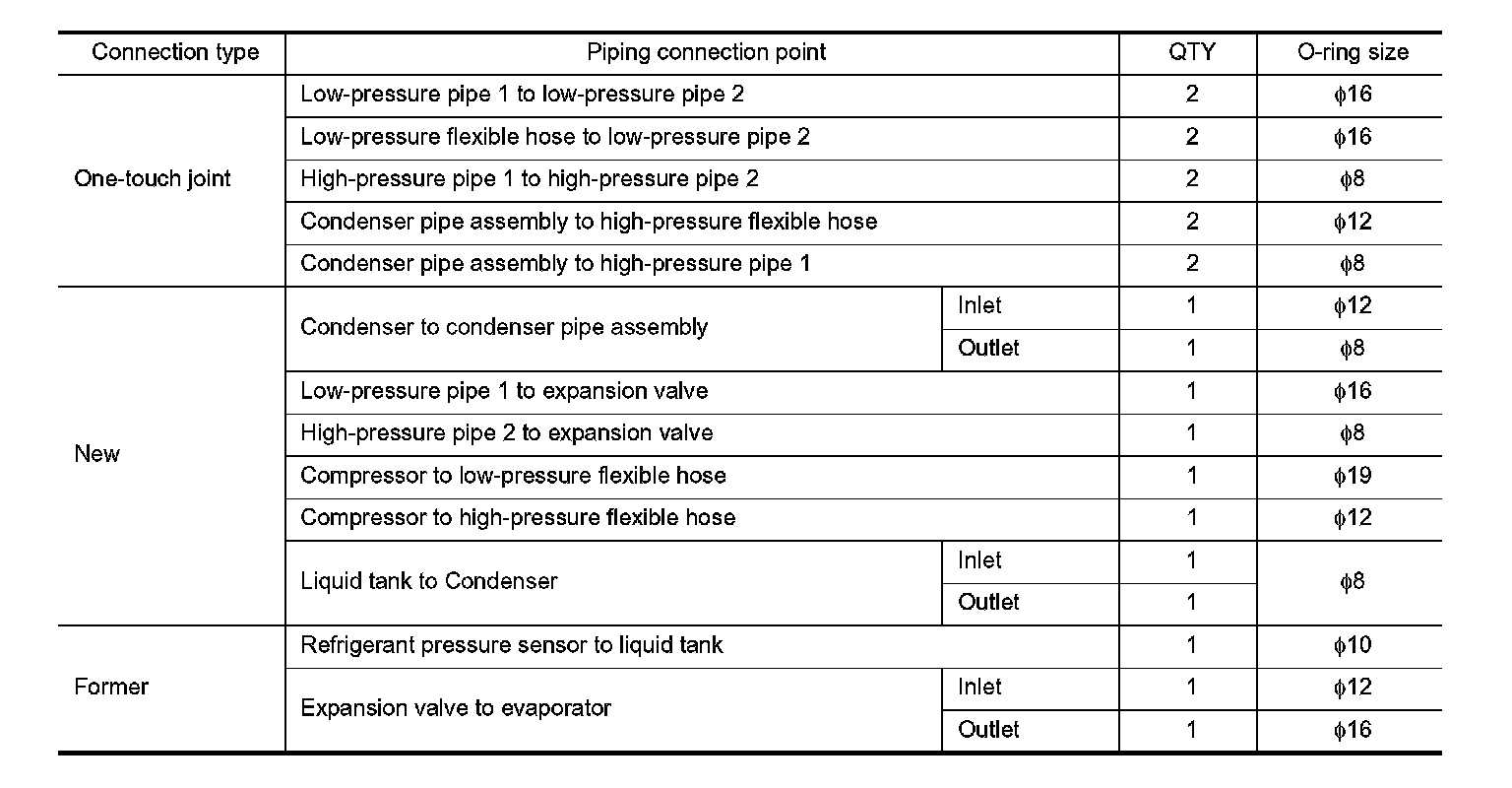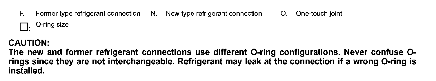 A new type refrigerant connection has been introduced to all refrigerant lines except the following location.