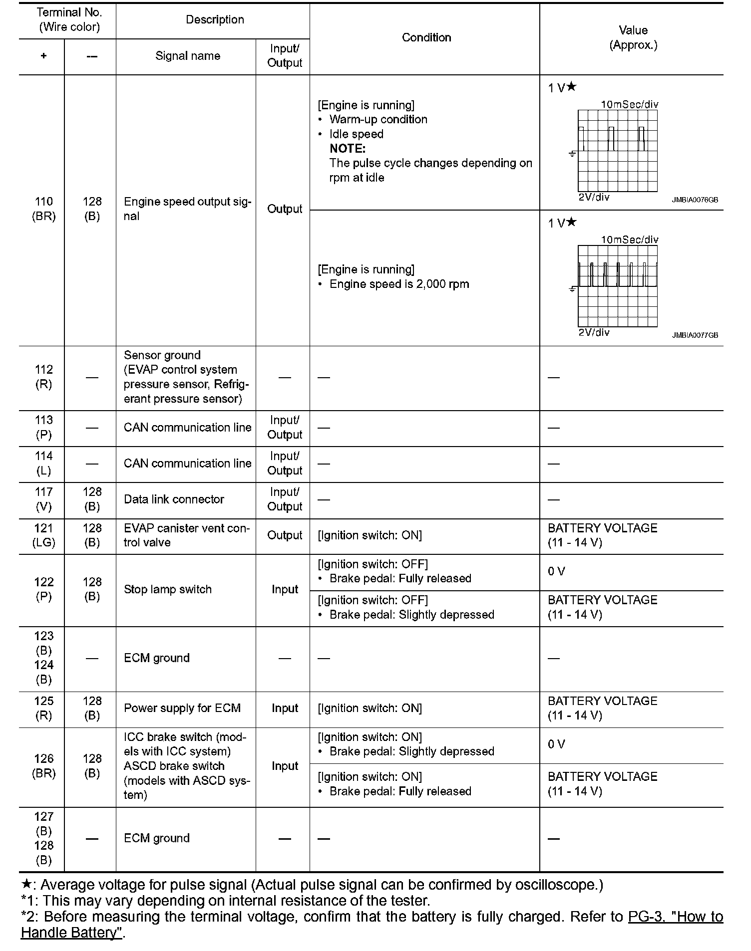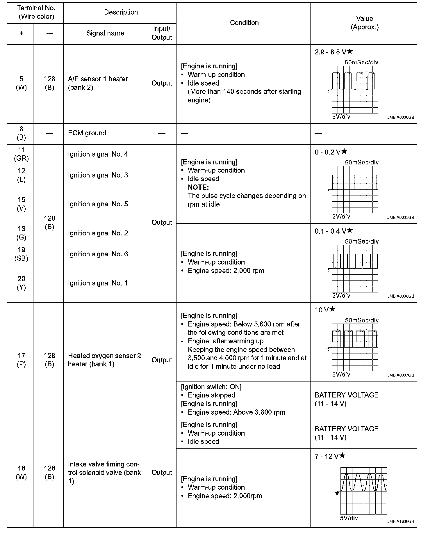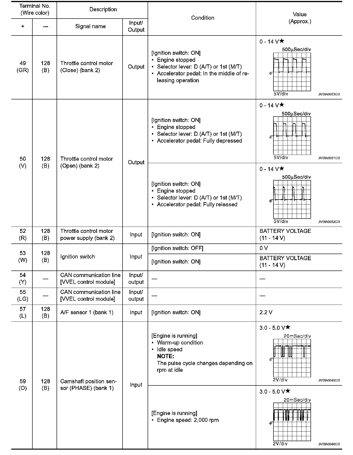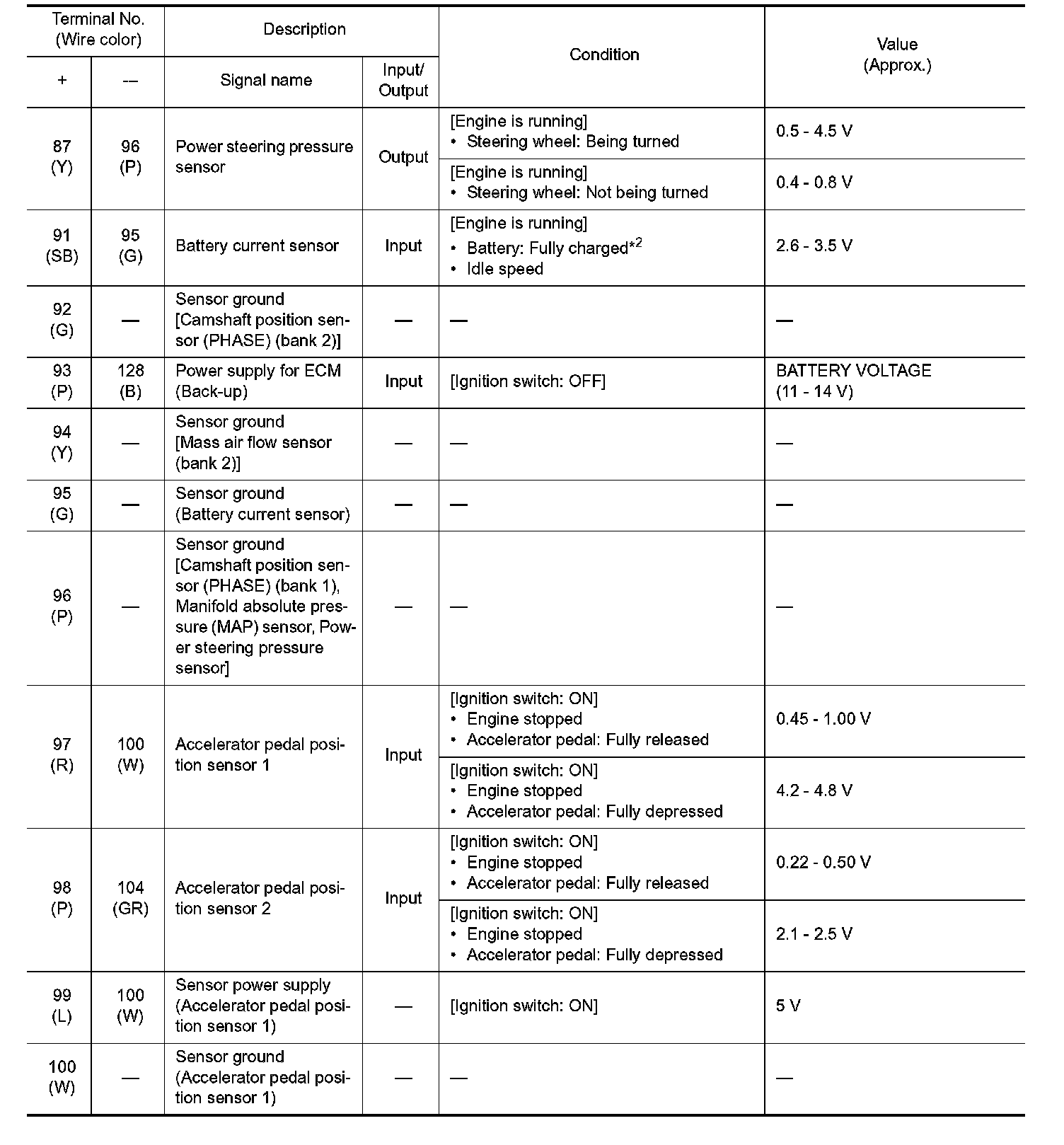 - Specification data are output/input values which are detected or supplied by the ECM at the connector.